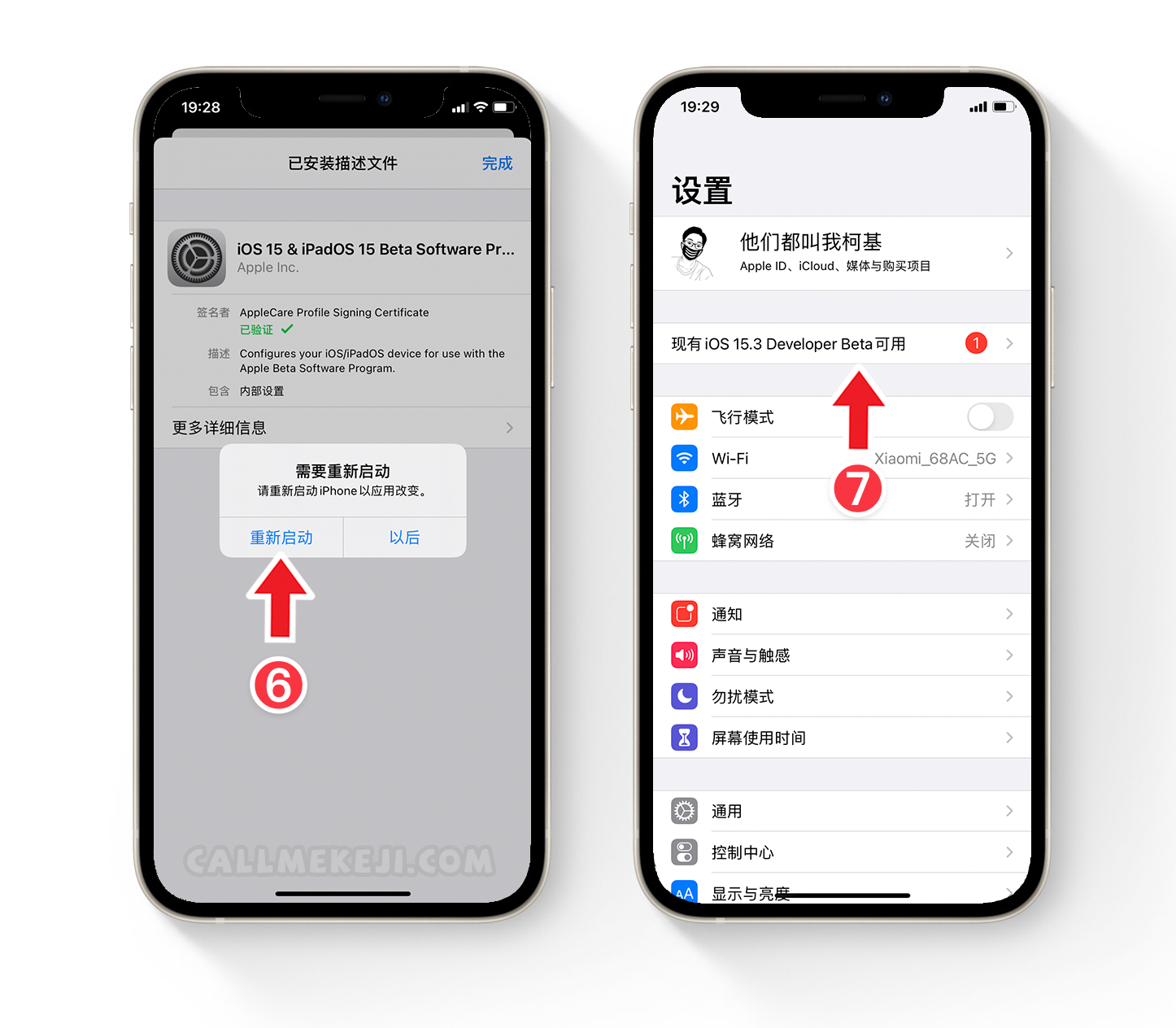 点击「重新启动」,手机开机后打开「设置」点击顶部「最新版 iOS 系统的更新提示」。