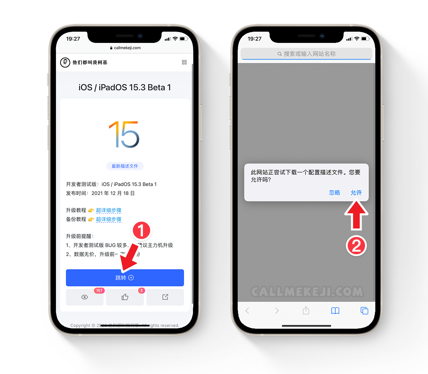首先点击「跳转」然后会跳出一个配置描述文件的弹窗,点击「允许」。